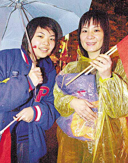 劉太母女昨午兩點來到民主廣場附近。記者問:「今天一直下着雨,冷不冷?」劉太說:「我們的心都是熱的,所以不覺得冷!台灣人民的心聲,要讓全世界人民都知道!」劉小姐則說:「我覺得這事很不公平,所以要站出來,我們需要一個有原則、有前途的總統,要求陳水扁立即驗票、驗傷,要公布槍擊案的真相!」