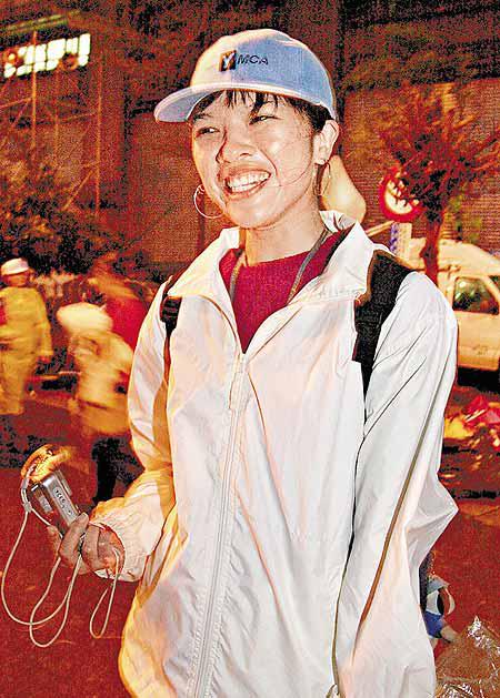 謝小姐說:「我九點半就來了,我很想阿扁下台。他太專制、太獨裁了,我覺得民進黨誰上台都沒有問題,我就是反對阿扁!阿扁只會拜票、握手、剪綵,其他好像甚麼事都不會做,經濟也搞不好,只會向老百姓施以小惠,他根本就沒有大格局的觀念。加上第一夫人的所作所為,更讓人覺得反感。」
