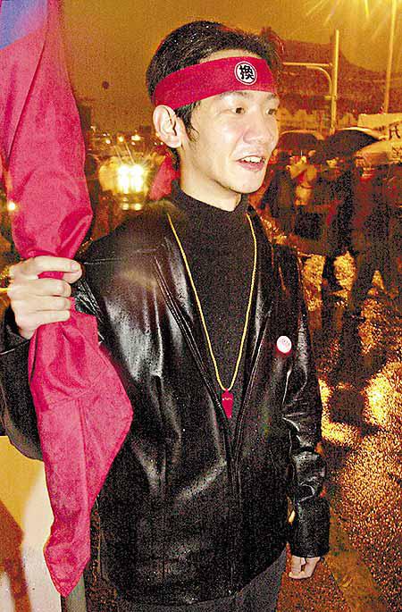在彰化大葉大學的丁同學和吳同學,昨天下午四點才從彰化趕到台北總統府外抗議。丁同學說:「我不累,我愛我們的『國家』,我們是大葉大學的代表!對於陳水扁被槍傷的事,我覺得他不驗傷很離譜,不讓人看很誇張!」吳同學接口說:「又不是甚麼大事,讓國際專家查驗一下,就知道傷口是真是假。我們本來是中立的,現在已經改變了。」