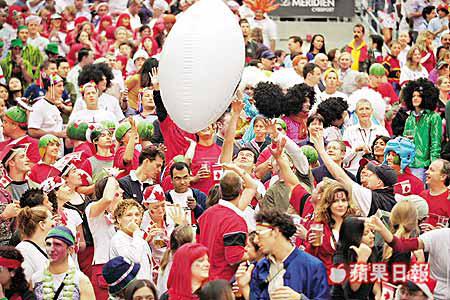 七人欖球賽大球場南看台永遠座無虛設,遲嚟嘅球迷更要排隊入座。不過,對於球迷嚟講呢個係天堂,但對保安人員嚟講就十足地獄。因為呢班被派駐守南看台嘅保安人員,往往成為球迷的攻擊目標,點攻擊法?咪用海綿欖球仔遠距離襲擊囉。