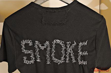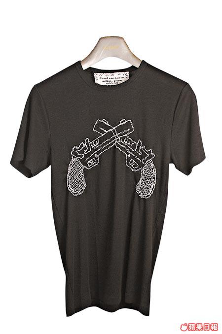 ■CarelvanLaere黑色刺繡手槍圖案Tee,後幅繡有精細的Smoke字樣。$2,200(LC)