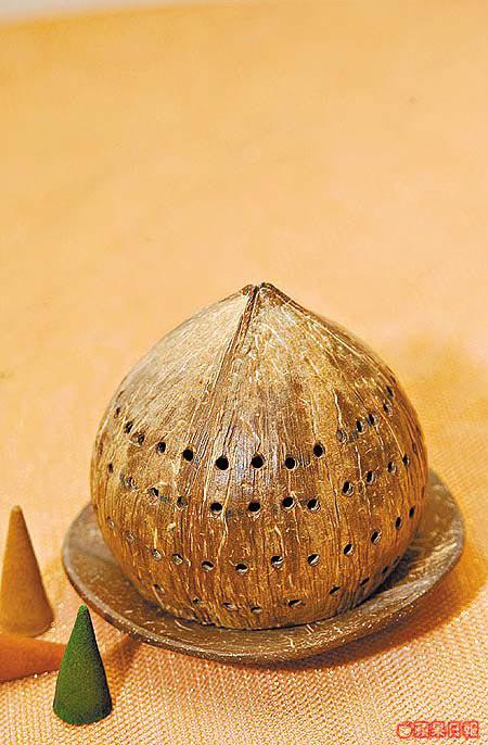 咁又畀佢諗到!連椰皇殼都可以用來做香座!去盡點,大家不妨考慮將線香插於透氣窿上,咁就可多一個長刺海膽做裝飾。