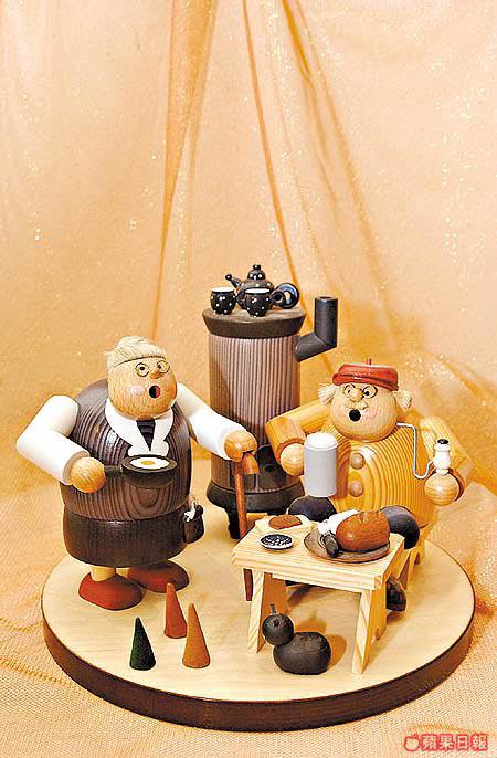勁Cute!來自德國的手製香薰木人,放入燃點了的香薰粒入木頭人體內,香煙便會從口中噴出來,而在這個擺設中,公公婆婆及煙囪均可放入香塔。