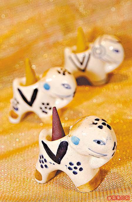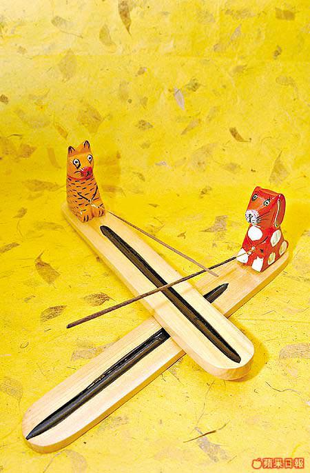 木製動物線香插,橫向插法可減輕灰燼四處飄散的問題,動物造型四正有特色,感覺很原始。
