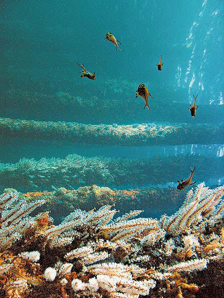 小火車駛至距離沙灘2公里的海堤路盡頭時,我們已身處浩瀚的海中心。四方八面的海風撲面而來,又濕又鹹。所謂的新落成水族館對我來說本來毫不吸引,但多得強勁海風,我為了暫避風頭,於是躲進了它的懷抱。然後,我才發現這個水族館原來建於50米深的海底,看的全是真真正正的海洋生物。原來一條條支撐起海堤路的木材,已繁殖出五顏六色的珊瑚海草,這個海底的彩色森林,早已吸引逾300種海洋生物定居於此。沿着樓梯一步一步往下走,海底森林的色彩也愈來愈豐富,我慶幸自己還是走了進來,可以體驗這次不平凡、但實在的水底旅程。