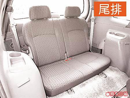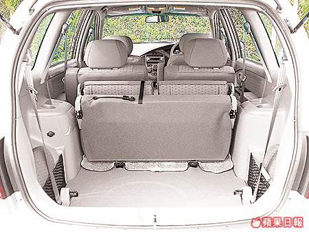 全車賣點所在,可算是車廂三排七座位布局,雖然車廂空間與一般七人車無異,但中、前排仍予人有乘坐闊落感,加上三排獨立頭枕,又有前、中排的中央手枕配搭,匹配上原廠冷氣及單碟式高級CD音響,還有三排獨立房燈、前排雙安全氣袋裝置,比較起一眾同級車都可謂不遑多讓。再者,遇有需要時尾排重可以收摺起來,以騰出更大載物空間,真係幾實用㗎!