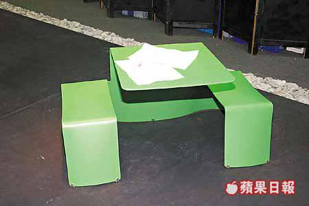 以鋁鐵製成的比利時Pic-NikJunior兒童椅桌,玩味十足,售價為1.4萬港元。 (Botz)