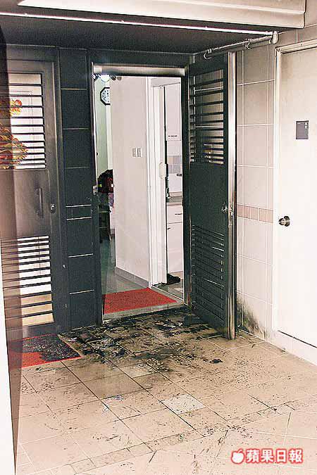 【本報訊】屯門富泰邨一戶人家過去一年半,至少十次懷疑遭樓下「惡街坊」以塞匙孔、淋天拿水及掟屎袋、尿袋滋擾恐嚇。戶主在門外安裝閉路電視對抗,並一度拘捕作惡者,但事件未因此平息;昨近凌晨兇徒更將行動升級,向大門投擲汽油彈,險令年近六旬的女戶主葬身火海,幸消防員及時趕至撲滅。