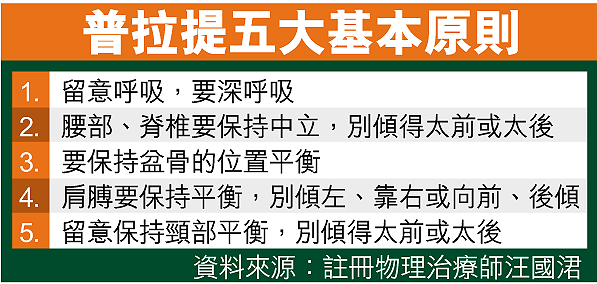 【本報訊】打Golf(高爾夫球)、做健身,現時均大行其道,但若姿勢不正確,揮高球棒隨時會扭傷腰部,多做擴胸運動也易令「大隻佬」變「鐘樓駝俠」。有物理治療師指出,講求保持頸、腰、腹、盆骨肌肉平衡的「普拉提」(Pilates)運動療法,近年極為流行,大家若將普拉提的五大原理運用於打電腦、搬重物、做運動之上,可改善腰痠背痛及避免受傷。 記者:雷子樂