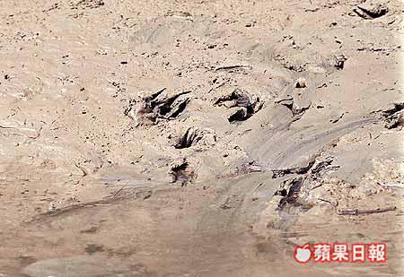 【本報訊】元朗甩洲昨日陽光普照,「反斗鱷」在早上九時已開始上泥灘曬太陽,直至中午十二時潮漲後才潛入山貝河中遁去,其間牠對於河中經過的船隻並不理會,但當漁農自然護理署人員駕航黃色的快艇遠遠開來時,機靈的牠即時泅入河水中躲避。 「反斗鱷」看來長大了不少,全身脹卜卜非常飽滿,牠上岸時在陽光的照射下,全身皮色呈黃金色,十分耀眼,但當太陽曬乾其身上的泥水後,其皮色亦逐漸變成泥灰色,但樣子仍十分可愛,龍精虎猛。