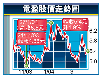 電盈表示,擬利用該公司股份溢價帳的全部餘額,抵銷損益表上的累計虧損。按03年底止溢價帳計算,預計削減股本可產生1734.6億元,將全數用作撇銷公司累計虧損1519.66億元,餘額214.94億元則會撥入一個特設的股本儲備內,有關款項須符合高等法院所規定條件的情況下方可使用。電盈昨收報5.4元,升0.1元或1.9%。