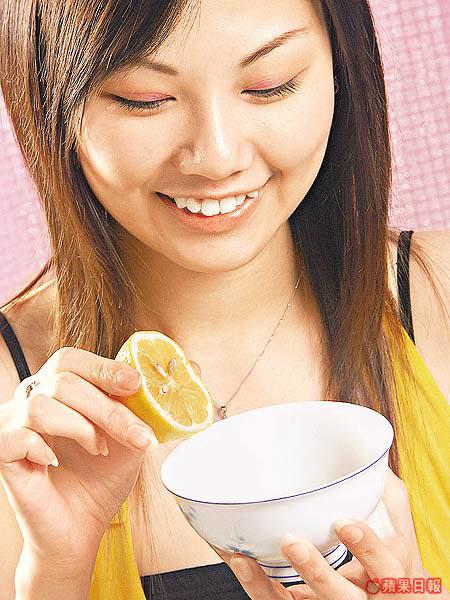 將蘋果磨成茸,加入檸檬汁然後拌勻,敷在面上約15分鐘,最後以清水洗淨。