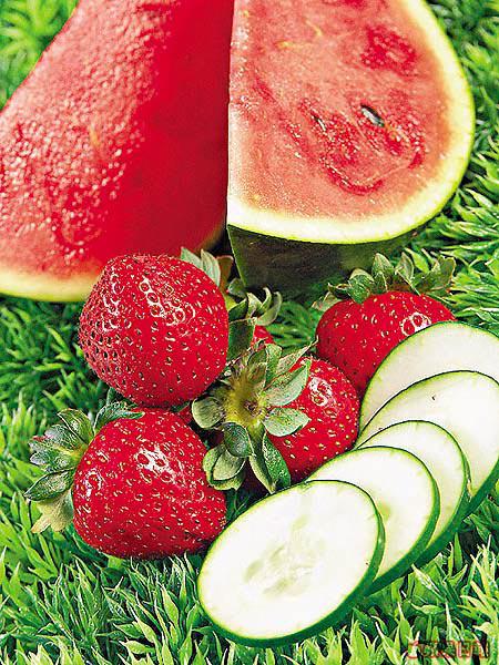 青瓜有潔面作用;西瓜有去油功效;士多啤梨則可美白,將三者混合做成雜果面膜再加以輕力按摩,便有深層潔面及美白的效果。