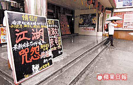 曾志偉及劉德華投資近四千萬元製作的電影《江湖》,因題材敏感而在內地三度送檢失敗,志偉更坦言該片在內地「冇得翻生」。但日前長沙市的青少年宮影院竟公然播映盜版《江湖》,票價十元人民幣,令志偉非常激氣和震驚,華仔亦感愕然。