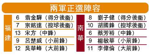 平均為福建貢獻二十分的翁金驊說:「我隊後備力量雖不及對手,但正選球員實力不相伯仲,只要發揮正常,絕對是一場五五波。」