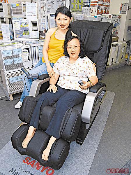 三洋最新推出的指壓大師按摩椅,備有獨家首創的疲勞探測器,只要手握儀器,便可憑心跳上升及手心出汗等生理反應,探測肌肉繃緊的部位,從而度身訂做個人按摩。其按摩球可伸展至135mm,更易接觸到肩膀的痠痛部位。按摩位夠全面,連腳底、小腿、大腿和臀部都可兼顧到。𠵱家購買有分期付款,重加送官燕棧出品的一口燕窩(價值$2,000),份量足夠媽咪食一個月。