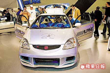 Alpine去年為慶祝成立25周年而製作的改裝本田思域房車(圖),車內裝上27款影音系統及喇叭設備,屏幕更可接駁電子遊戲機,要製作相同的高級流動影院需花費200萬港元。