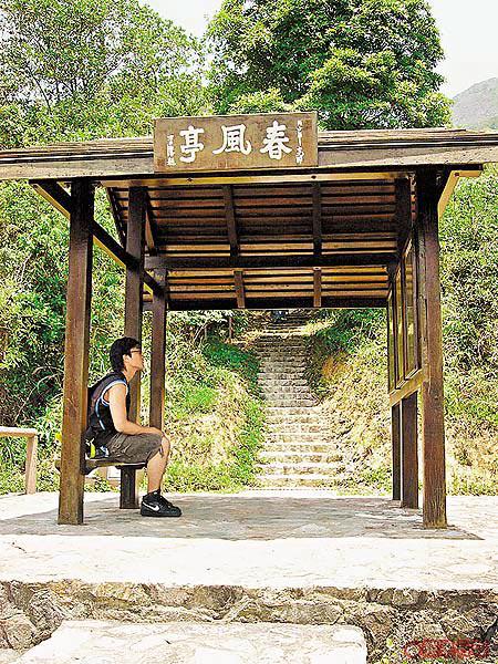 八仙嶺自然教育徑初段係整齊石路,雖暗斜但唔算難行,上山10分鐘會見到個涼亭,大家千祈唔好掂行掂過,因為「春風亭」係非一般涼亭。