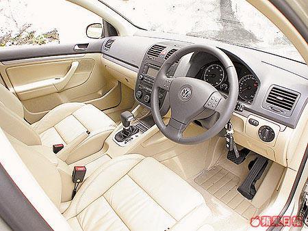 相比下,座艙陳設跟先前入門版Golf1.6FSI近似,但新車兩排改換上真皮鑲嵌,既講究又貼服,遇有需要尾排椅背更可以左右獨立收摺放平,令尾廂容量幾近倍增。再者,原廠高級多碟式CD音響組合外,還輔有前後獨立送風的恒溫冷氣系統,以及原廠電天窗同前後獨立照明裝置,當然少不了全車8個安全氣袋連充氣簾幕。