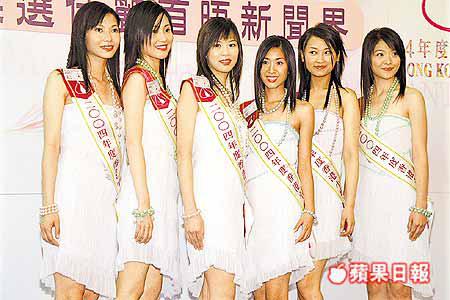 無綫「2004年度香港小姐競選」十八位候選佳麗,昨日在赤柱富豪海灣首次正式見傳媒,大會安排佳麗穿上雪紡tubedress襯珠鏈亮相,並分別由開篷跑車接載進場。 談吐大方 眾佳麗學歷以大學程度居多,言談大方,來自西雅圖1號朱慧敏雖然是第一位出場佳麗,但絕沒有半點怯場,她在台上說:「我喺華盛頓大學新聞政治系畢業,我都做過記者,有乜說話同做錯,請多多指教同包涵。」 而李影女兒8號沈 採訪:卓寶花 攝影:陳志嵐