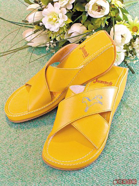 Jocomomola芥辣黃粗帶交叉拖鞋款,旁邊繡有一隻小馬仔,賣相精緻。咪睇佢係平底款,後踭都可幫你增高一吋㗎!