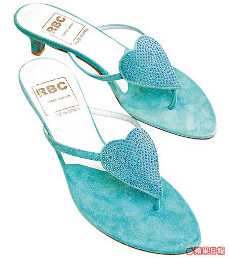 西班牙RBC幼帶高踭涼鞋,中間心形鑲滿水晶,貴氣十足。