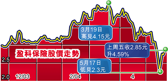 盈保5月初公布首季業績,純利1.1億元,營業額約4億元;投資及其他收入上升139%。
