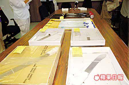 【本報訊】大埔兩批同門但不同支派的「新義安」黑幫人馬,疑因爭奪勒收富亨邨熟食小販地盤利益,正摩拳擦掌醞釀大廝殺;警方接獲線報展開跟蹤監視,昨晨突擊搜查南坑村一間村屋,撿獲一批疑準備用作「開片」用途的攻擊性武器,當場拘捕五男一女青少年,其中十五歲少女是一名中二學生,各人目前仍被扣查。