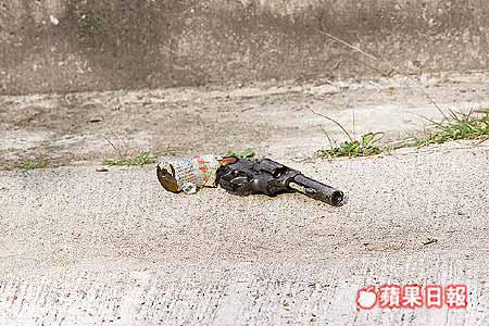 【本報訊】一名姓陳男子,昨午四時許途經大埔南運路近王肇枝中學,發現林村河岸邊淤泥露出一支類似手槍的物體,立刻致電報警。 多名警員接報到場(圖一),將手槍撿起仔細查驗,證實只是一支玩具槍(圖二),虛驚一場。 李偉民攝