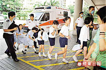 由於有大批學生集體食體中毒,十部救護車趕到校內接載受影響學生,經校方統計下約有一年級至六年級(七至十五歲)一百名學童懷疑食物中毒,其中五十八人情況較嚴重,需分別送往聯合醫院及將軍澳醫院,部份送院時要用氧氣罩輔助呼吸,其餘四十多名情況輕微的學童則留在校內觀察,兩間醫院採取緊急應變措施為不適學童檢驗,各人事後無恙出院,由校方安排校車接回校,再由家長接返家。