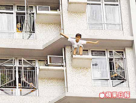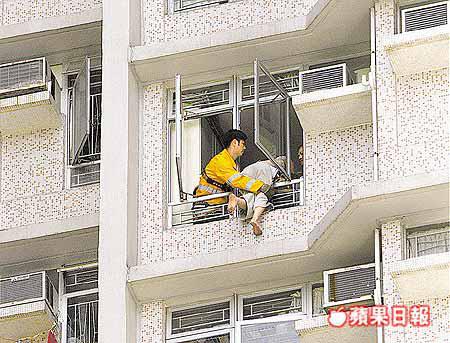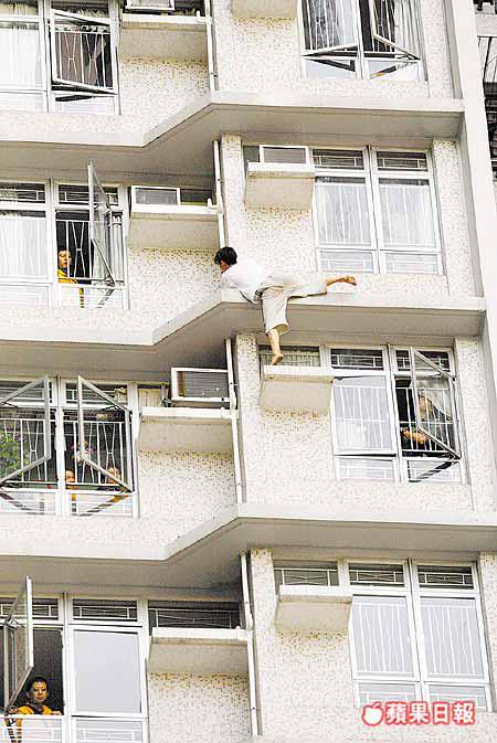 【本報訊】藍田平田邨昨出現「蜘蛛女」,一名打扮男性化的女子訪友期間突然失常,像蜘蛛俠般徒手爬行,由二十三樓外牆飛簷走壁直爬落十二樓,又激動呼叫:「唔好屈我」,過程險象環生,擾攘近四小時,由談判專家朗讀一張字條說服救回。