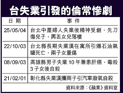 台北高尚住宅區天母發生倫常慘案:一名失業後精神大受打擊的母親,前晚手持菜刀重創三歲大兒子後,昨日凌晨又突然發難,涉嫌把一歲三個月大的小女兒,從十一樓寓所丟下街。女嬰先撞到花圃角磚,再跌落地面,腦漿四溢,七孔流血,當場慘死。