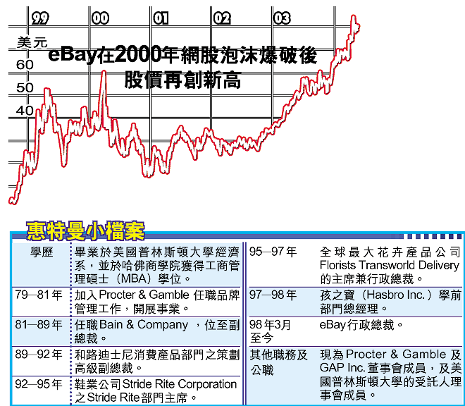 科網股泡沫爆破後數年,很多網站仍在苦苦掙扎求存,但以拍賣起家的eBay表現卻一枝獨秀,盈利不斷上升,現時股價更徘徊於80美元水平(美國時間5月24日報82.11美元,見圖)。至今,eBay的業務已由單純拍賣,轉型為電子商業消費網站;市場更由美國本土,擴展至全球28個地區。