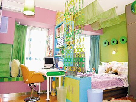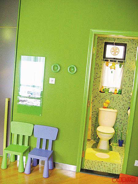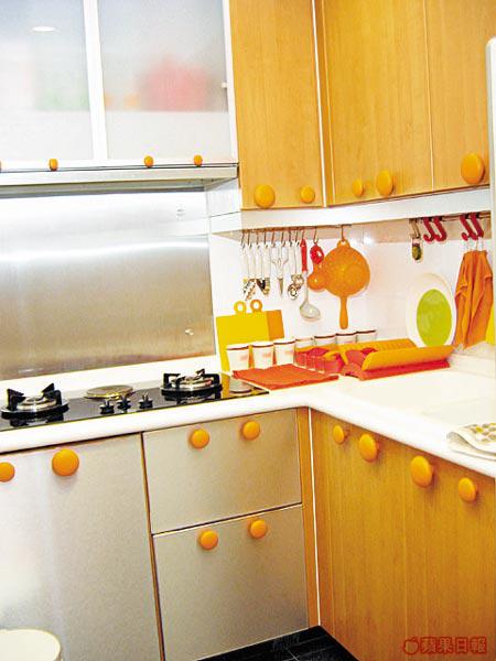 張太在色彩配搭上很有天賦,客、飯廳是紅配黃,廚房是白配橙,主人房則是綠配紫,滲少許藍色,這樣的配搭是經過細心思量的。「在眾多顏色中以藍色最靚最舒服,但因為是大眾喜歡的顏色,藍色是屬於大眾的;紅色較其他顏色更有部屋感覺;綠色則呈現多層次色階,老公告訴我色譜有700多種,綠色佔了300多種,很容易買到合心水的家品。」