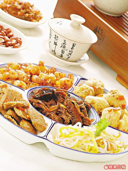 小食中以芝麻辣螺的仿真度最高;椒鹽腰花則帶點煙韌;素雞絲海蜇勝在清淡,上海麩夫做得比在上海舖吃過的還甜一點,亦較少油,以素肉炸成的椒鹽香酥骨則遜息一點。