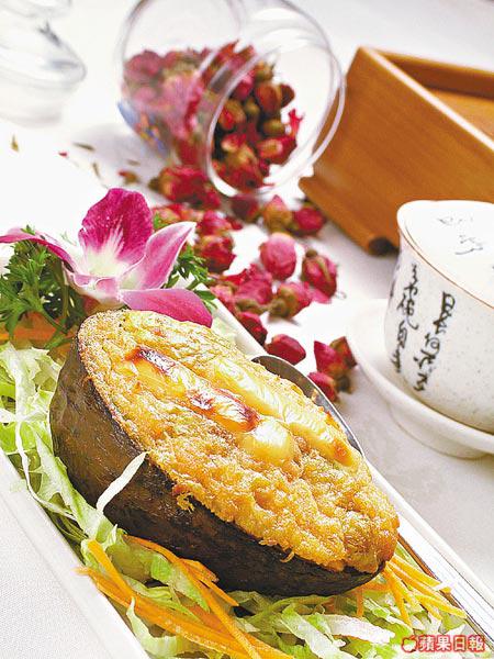 這個招牌菜必須預訂及至少柯打兩客。為免牛油果變黑,每次一做就要用整個牛油果做兩客,有時若牛油果太生,為免影響食味,他們會寧願說沽清。果殼內釀了素吞拿魚、沙律醬及牛油果茸,表面鋪上芝士焗20分鐘而成,由於仍保留有少量原有果肉,食起來更有口感。