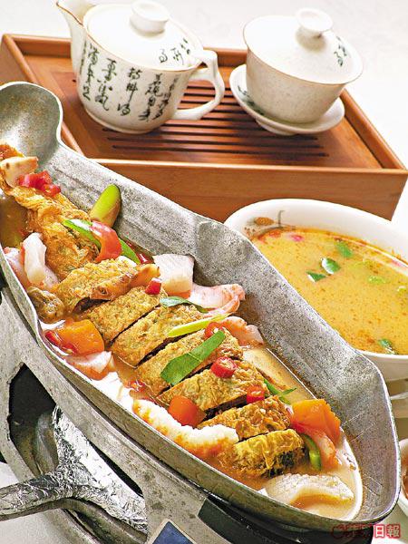 魚肉其實是以鮮腐竹包上紫菜炸成,大廚話凡是處理油炸食品,都會盡量索乾油,以減低油膩,食油也頂多用兩天,以免翻炸過度而產生致癌物質;冬蔭功湯跟泰菜做法沒兩樣,只是剔除了蒜頭。剛炸起的魚肉固然香脆,紫菜亦充當了魚肉的鮮甜;湯汁內有指天椒,煮得愈久愈辣,柯打時記得指明要小、中或大辣。