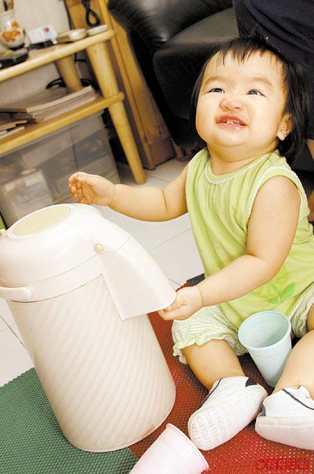 開水最好以膠壺另外放好,以便孩子可以自行倒水飲。另外水不要太熱,免發生燙傷的可能。當然忌用玻璃杯,以避免不慎打破,而被玻璃碎傷害的可能。
