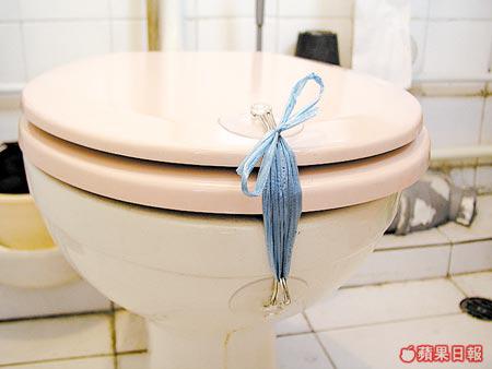 用兩個膠吸盤貼在廁板蓋及廁位下,再用尼龍繩索緊,小朋友便不能隨便打開廁板,及學大人如廁而墮坑!