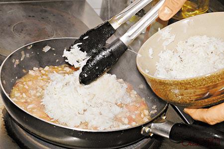 白飯要炒得帶微濕才不至焗完後太乾。