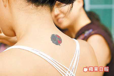 鍾麗緹、關之琳和泰國模特兒Nok昨日往屯門,錄影無綫節目《瑪花纖體特約:女人心底話》。鍾麗緹身穿性感背心,展示頸背上的紋身,她透露這是與丈夫的情侶紋身,她說:「個紋身叫雙火,英文係Twinflames,係指兩個靈魂分開咗,之後喺番一齊,我年幾前嘅情人節喺北京紋,我老公就紋喺左手手臂。」