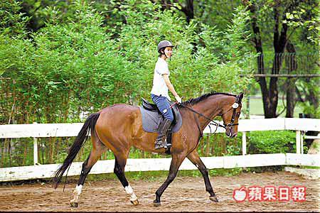 「有時為了控制隻馬,將韁繩吊起時,雙手要維持在某個姿勢、大腿及小腿又要同時夾實馬的兩旁,背要挺直,可以說是全身的部位都要用到。」說真的,在一旁看着Karen與馬兒練疾步走,只見她挺直背、在馬背上一上一落英姿颯颯,但卻不是易事。Karen說由於騎馬的姿勢就是要挺胸收腹垂直後背,所以平時落到地面上時,整個人都筆直的,與時下年輕人垂着頭行路的樣子大相逕庭。