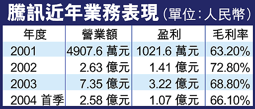 文件指出,騰訊去年純利3.2億元,預期今年盈利4.44億元,公司於上市前派息套現3290萬元。文件又指出,上市後擬將盈利中最少10%用作派息。