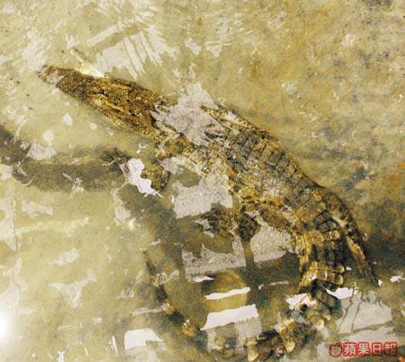 甫進場,正門位置即見大水簇箱,箱內一條巨鱷,足令卓兒看得目瞪口呆:「嘩……」走近看看,巨鱷體長約6米,屬世界最大及最兇猛的灣鱷類,在水中動也不動,載浮載沉口擘擘,卓兒說:「佢老得滯呀?唔願郁嘅?」別以為巨鱷年老,實在牠年約40歲,正值壯年,鱷魚是涼血動物,浸於水中體溫降低,於是活力下降。
