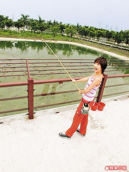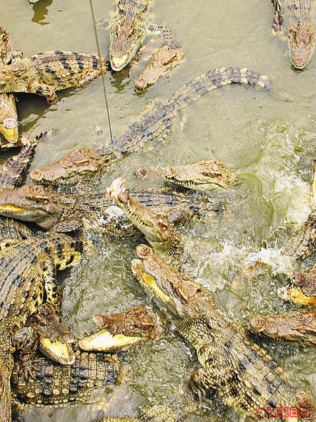 鱷魚劇場對面有個鱷魚湖,湖內鱷魚過百,有的在水面游戈,有的在岸上靜止不動,卓兒小試牛刀,先擲下肉餌,惹得群鱷撲食,登時水花四濺;戲肉來了,手拿釣桿,吊下肉餌,群鱷爭相噬咬,卓兒和牠們角力好一陣子,香汗淋漓。餵食垂釣難不倒美少女,但要親身用繩索降鱷,卓兒耍手擰頭,幸有鱷魚釗親自教路,一條3米長的大鱷終於束首就擒。