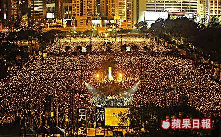 集會原定於晚上八時開始,但參加者太多,人潮不斷從銅鑼灣及天后兩邊湧入維園,令集會延至八時半才正式開始。這時候參加市民已經迫爆六個足球場,他們有年年出席的有心人、有內地自由行旅客、也有第一趟來的年輕人。