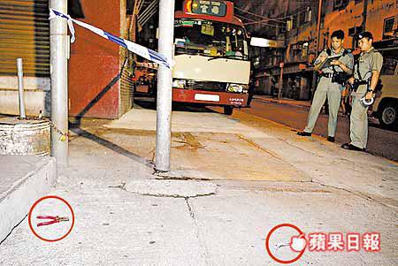 【本報訊】一對姓許的賊兄弟(三十三及三十六歲),昨日凌晨四時半,在觀塘仁信里涉嫌撬門及打爛玻璃窗車內盜竊,但被途人發現報警拘捕(圖一)。警方在場撿獲螺絲批及鐵鉗等工具(圖二紅圈示)。經調查有四架客貨車及私家車損毀,失去小量輔幣。 黃曄寧攝