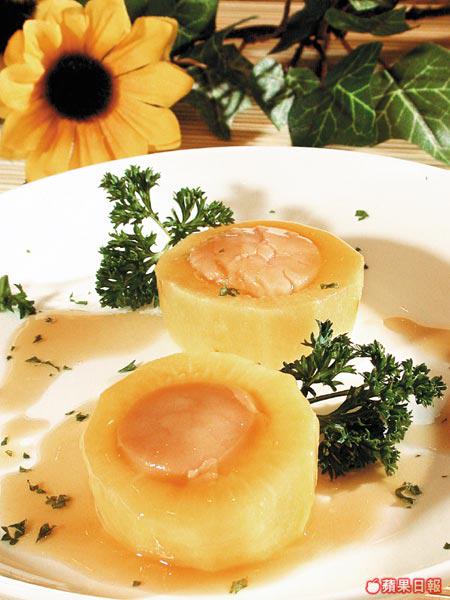 奇異果又叫彌猴桃,原產於中國。不過時至今日,卻幾乎只有在西式甜品才會找到它的蹤影。奇異果味道酸酸甜甜,很適合夏天食用。除了傳統的綠色奇異果,今次還加入了近年流行的奇異金果,一起炮製出一冷一熱的菜式。而師傅今次特別設計的金果玉環瑤柱甫,用了奇異金果取代節瓜來做瑤柱甫,味道新鮮更好味。