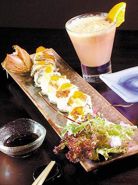 以波士頓龍蝦做餡料的壽司,壽司頂鋪上鰻魚及牛油果,一條龍形壽司活現眼前;無酒精果汁飲品以蘋果、芒果及薑汁調校而成,有消除疲勞之效。(a)