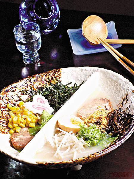 這一碗兩味的湯麫,6選2湯底包括:麫豉、咖喱、豬骨、日本芥末、魚湯和豉油,另可選海鮮或雜錦配料,麫款用沒有鹼水味的日本日清拉麫,不落味精,吃後沒有口乾喉燥的後遺症。(b)